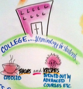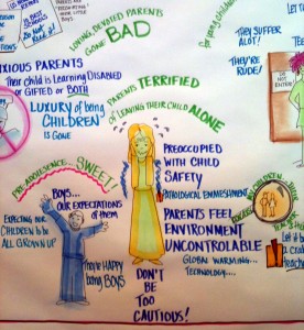 I loved the addition of graphic artists at this year’s NAIS Annual Conference. It was a marvel to watch them work and then see the finished product – huge poster board representations of the words of the main speakers.