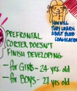 Here are some graphical vignettes from the giant poster the artist created from Mogel’s words. Each has to do with an aspect of her talk.
